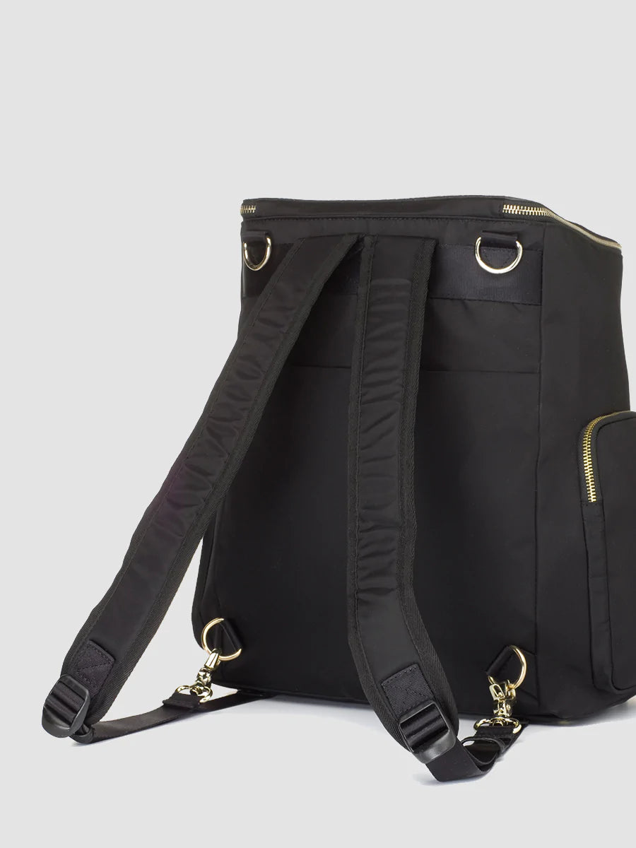 With multi-strap options The Alyssa is the convertible bag without compromise. Wear comfortably as a backpack with the fully padded straps, or tuck these into the back pocket and attach the leather shoulder strap for an elegant shoulder bag look.