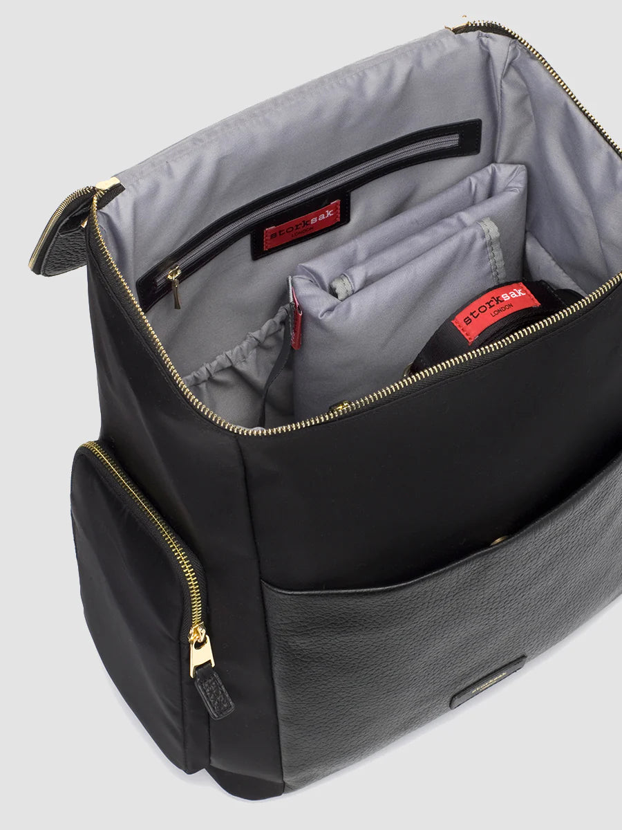 Everything you need in one changing bag. From the outer design, exuding style with its grained leather details and pale gold accents. To a perfectly crafted interior; easy to access and a place for everything.
