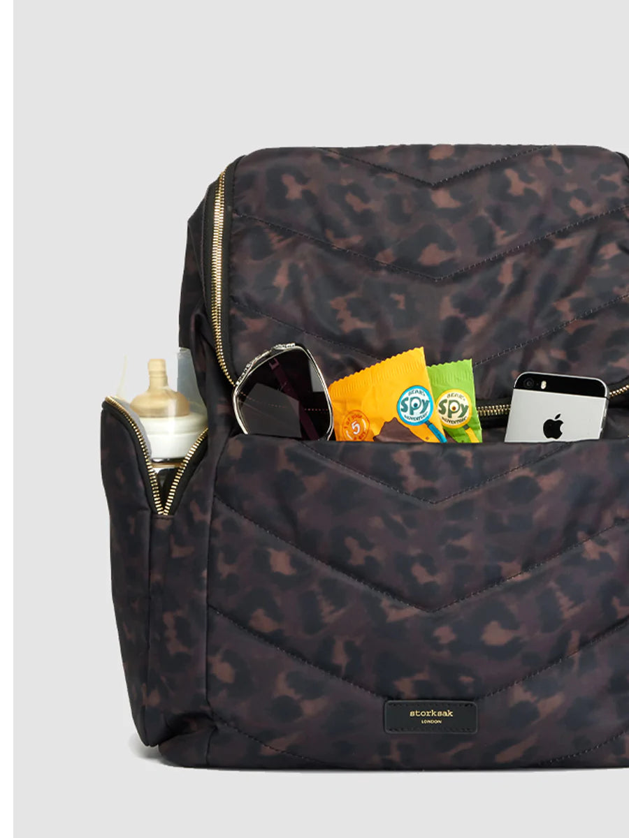 Everything you need in one changing bag. From the outer design, exuding style with its subtle print and pale gold accents. To a perfectly crafted interior; easy to access and a place for everything.